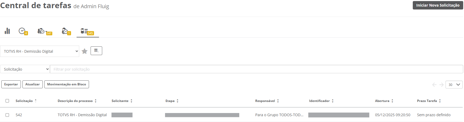 Para mais detalhes sobre como encontrar uma solicitação acesse "4.2. Consultar demissões em andamento".