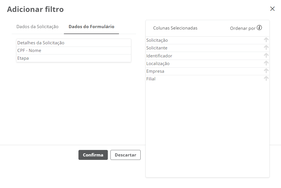 Após selecionar os campos desejados, clique em "Confirmar".