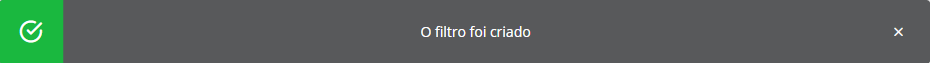 Depois de finalizar a configuração do filtro, uma mensagem informará se o cadastro foi bem sucedido.