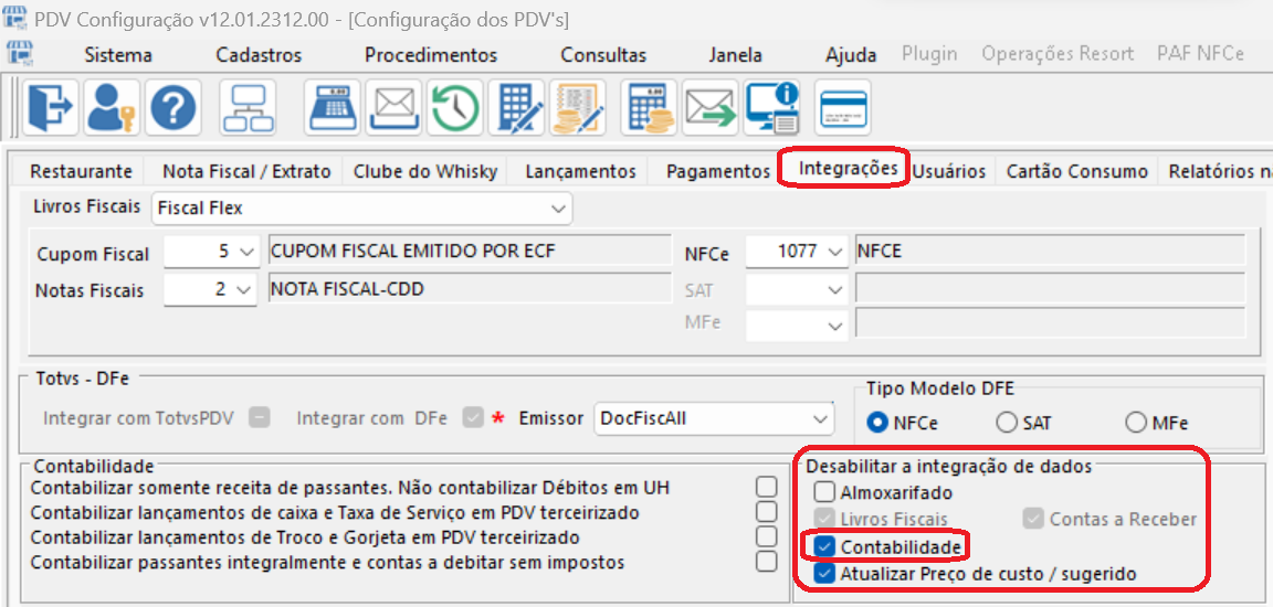 A primeira ação que devemos ter é desabilitar a integração nativa do PDV Config para a contabilidade, marcando o flag no parâmetro conforme figura abaixo, para que essa integração que é realizada pela auditoria do PDV não seja realizada. Devemos fazer isso, para que os dados integrados sejam balizados pelo ambiente resort pelo Integrador.