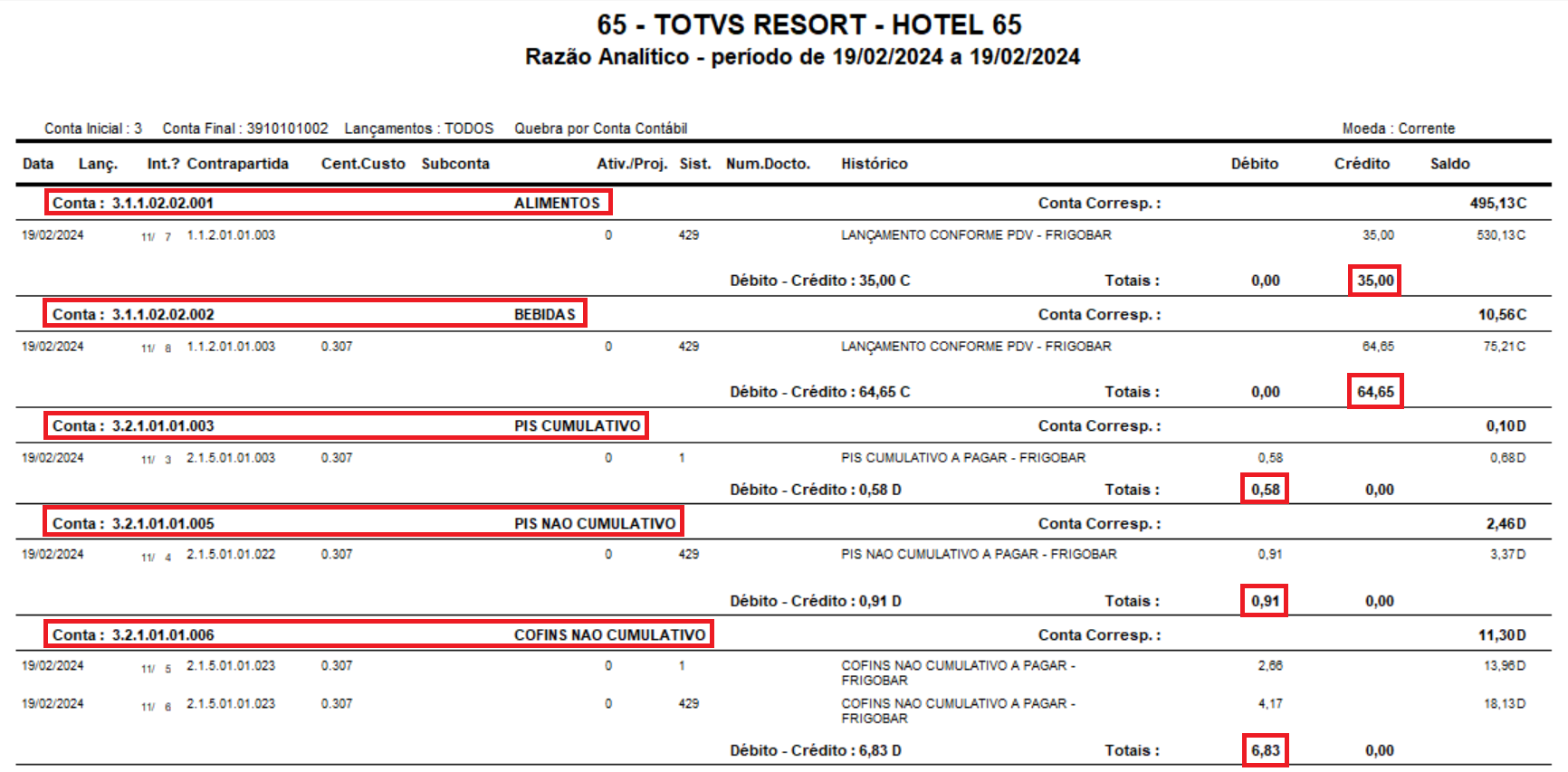 Outros relatórios existentes e nativos do PDV, divergem da lógica e do conceito do resort, portanto, não tem o objetivo para esse processo de conferência e validação dos dados integrados: