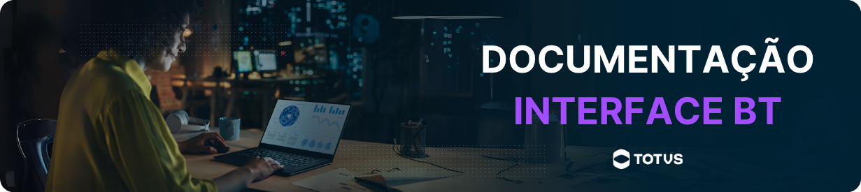 Olá, você está na pagina de documentação da Interface BT, a partir desta página você poderá visualizar documentações relacionadas as Atualizações, documento que exibe as principais novidades e manutenções aplicadas a interface. Além disso você poderá visualizar o nosso How To, onde são exibidos vídeos curtos e explicativos das principais operações da interface e os nossos Manuais de operação e configuração.