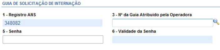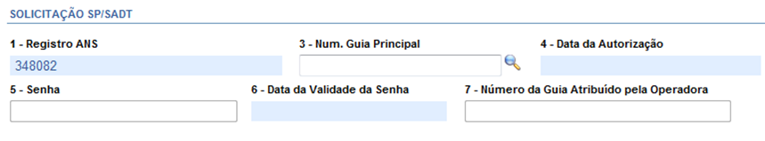 No Autorizador, caso seja preenchido o campo “3 - Num. Guia Principal”, a guia que está sendo solicitada passará a estar associada a uma guia pré-existente após a sua solicitação. Também é possível localizar a guia através do zoom. Para a solicitação, o campo “5 - Senha” ficará desabilitado.