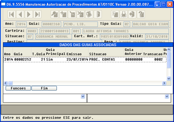 - 3 - Num. Guia Principal: Neste campo, deve ser informado um número de documento anterior, ou seja, não é o código de guia de autorização. Neste caso, o sistema irá realizar a vinculação dos documentos no Revisão de Contas.