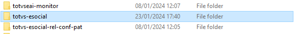 Recomendamos acessar este diretório localizar o arquivo totvs-esocial.war e movê-lo para um diretório de backup.
