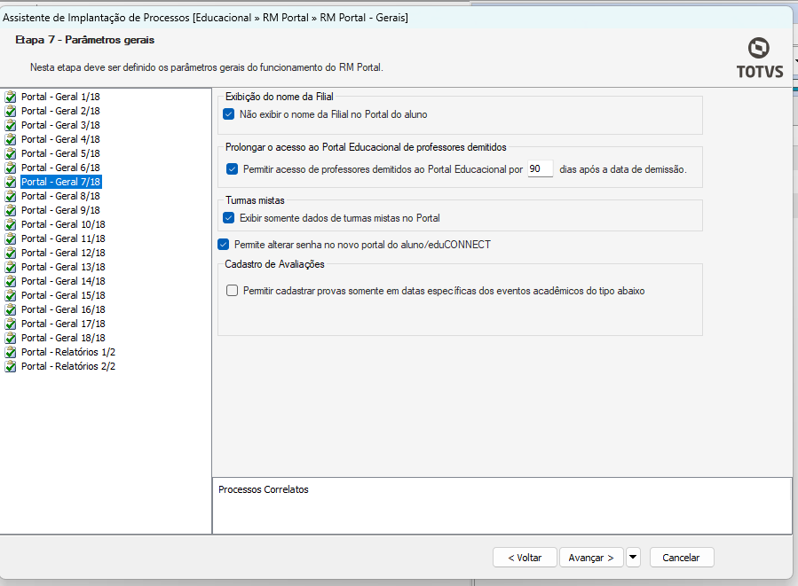 Período Letivo: O Período Letivo associado ao curso deve estar configurado para ser Exibido no Portal do Aluno.