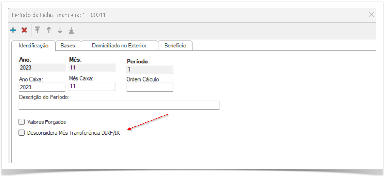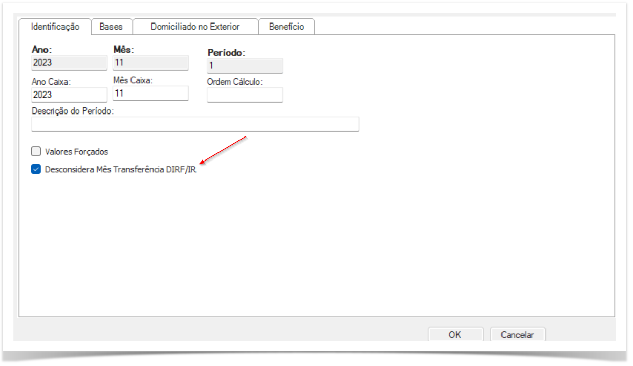 Parâmetro desmarcado no período da ficha financeira competência (11/2023):