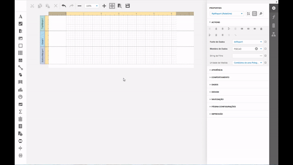 Na etapa Designer, utilizamos estes elementos e suas propriedades para criar os mais variados tipos de relatórios e forma prática e ágil.