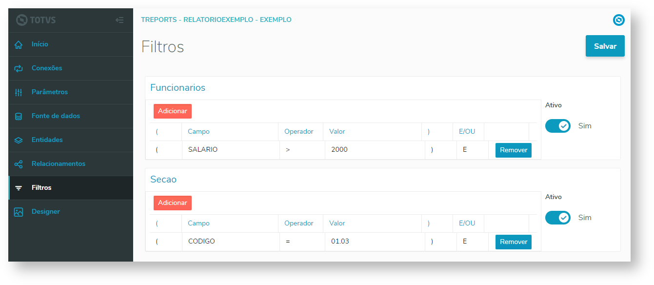 Os Filtros são aplicados nas Fontes de Dados do tipo Tabela, filtrando os resultados de acordo com o que o usuário cadastrar.