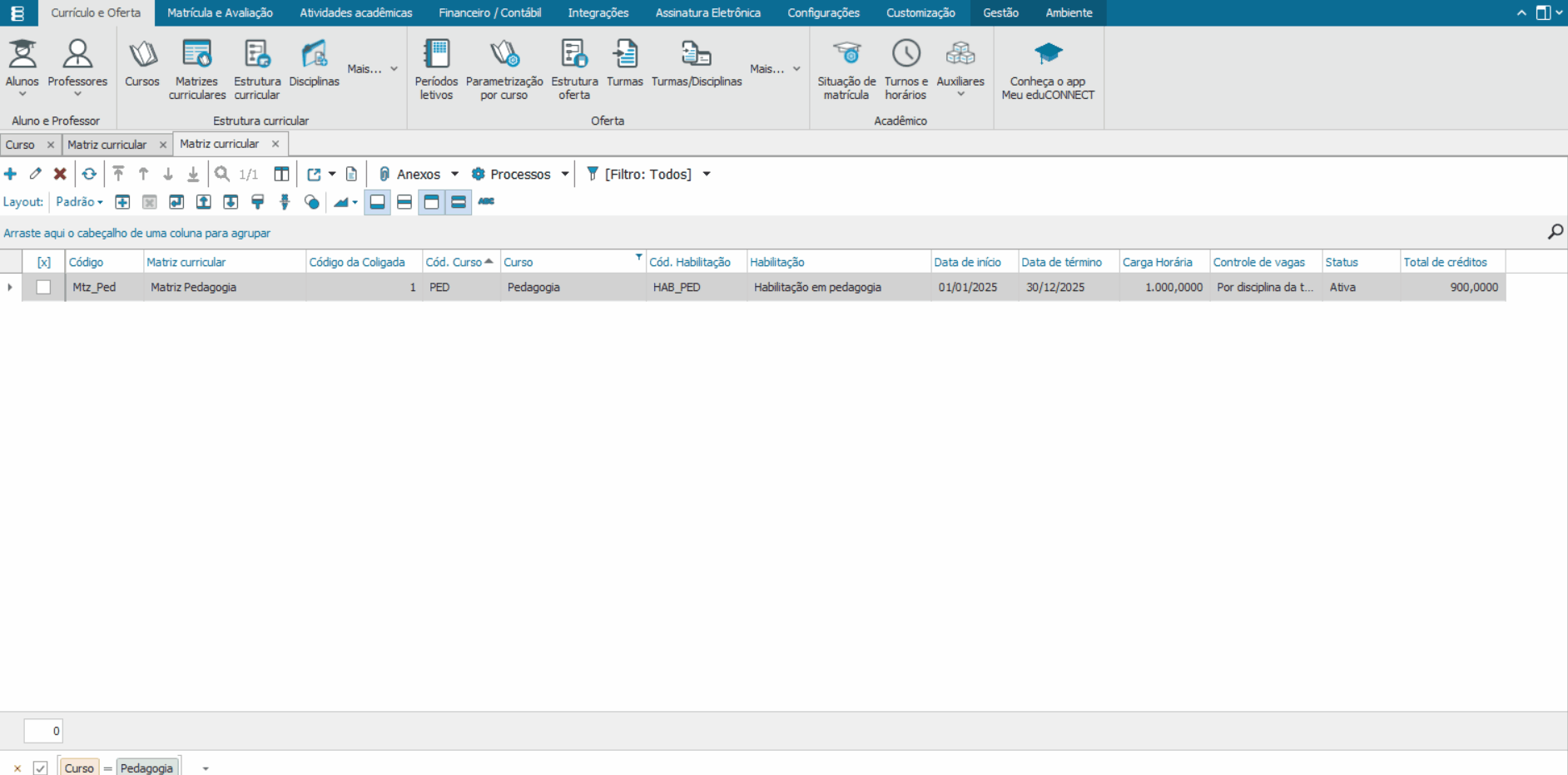 - Ativa: Indica que a matriz pode ser utilizada na realização da matrícula dos alunos.