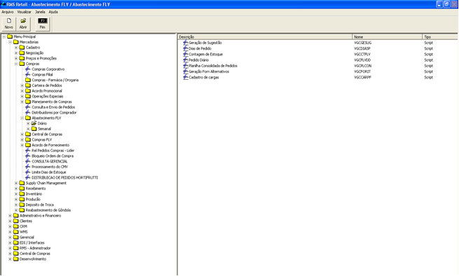 Menu RMS | Selecionar os programas que estão no Abastecimento FLV. |