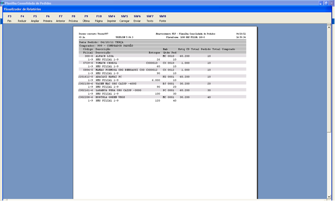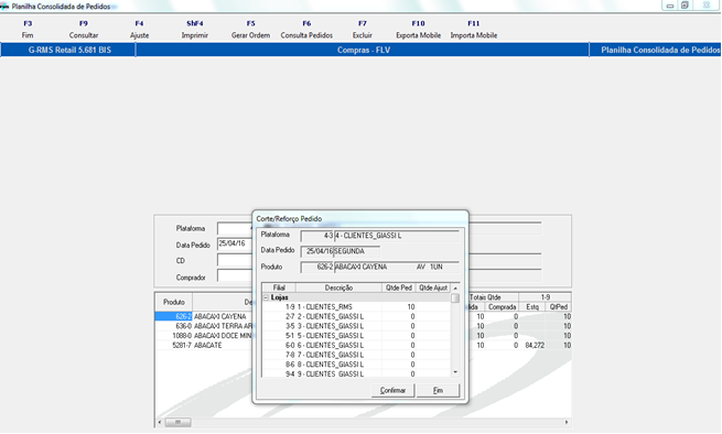 Esta tela possibilita visualizar / ajustar / imprimir o total de pedido do produto e o pedido por filial.