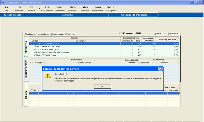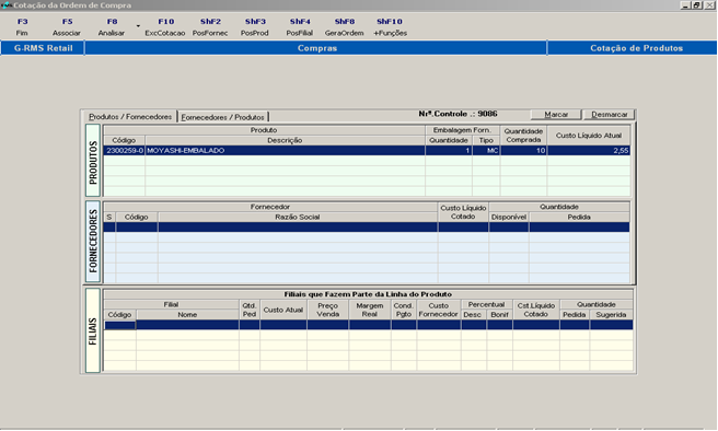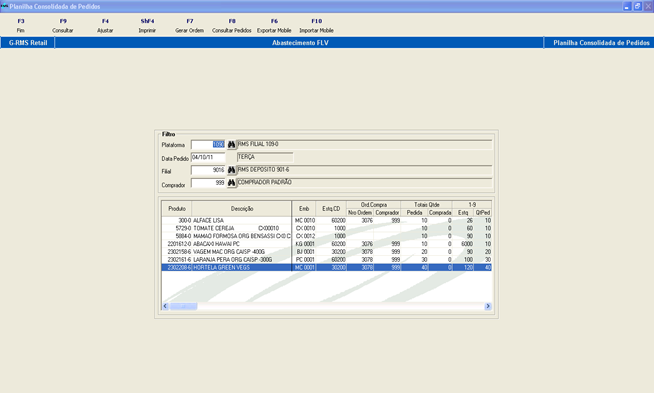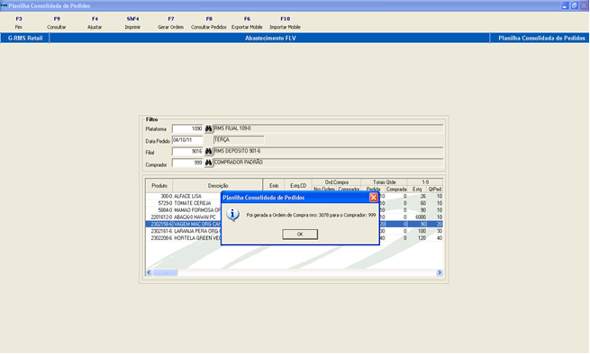 Na tela de planilha consolidada, ao teclar F7 – Gerar Ordem são geradas as ordens de compra.