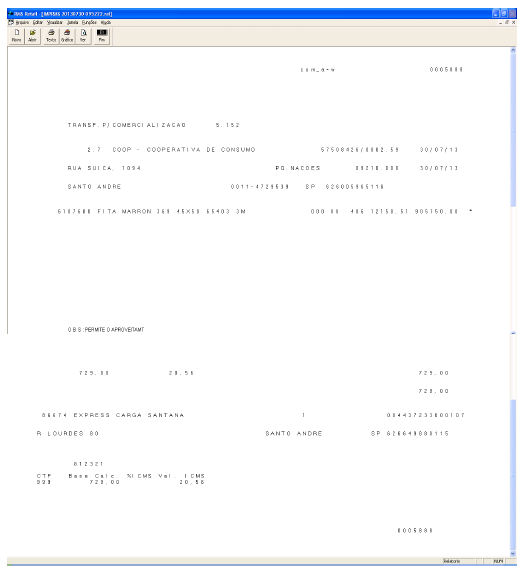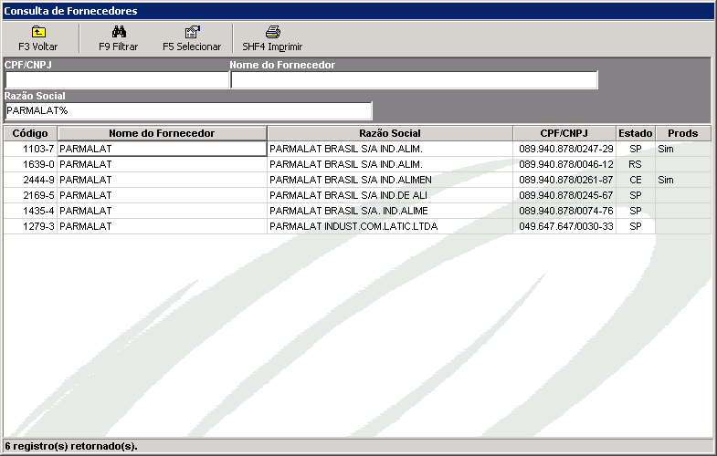 - SHf4 – Imprimir: Permite a impressão na tela de relatório com a informação selecionada.
