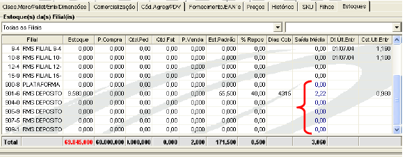 Dias Proteção | Quantidade de dias de proteção para cálculo do preço de venda. | |