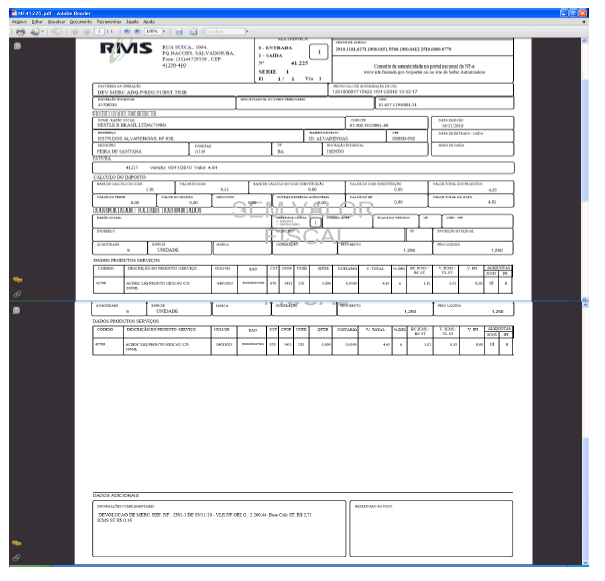 Na Consulta Fiscal, verifica-se que ICMS e ICMF foram gravados em Dados Adicionais. O IPI está zerado, pois o produto não é tributado pelo IPI.