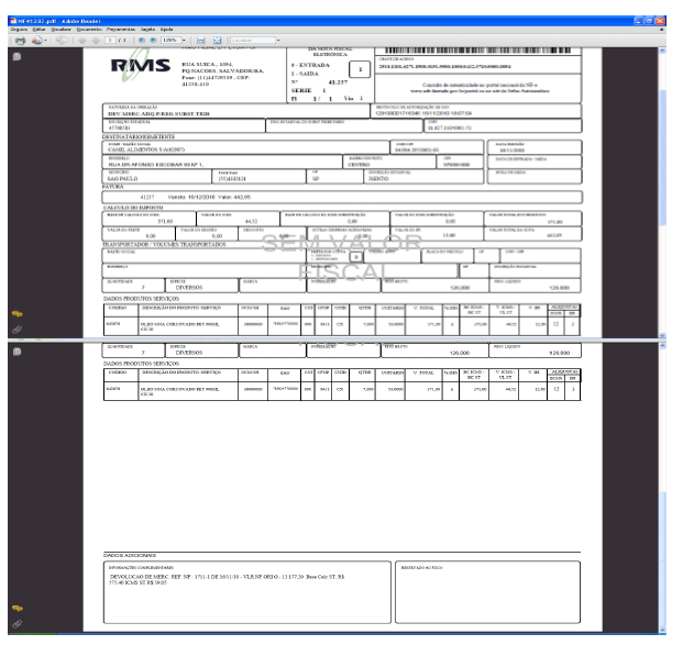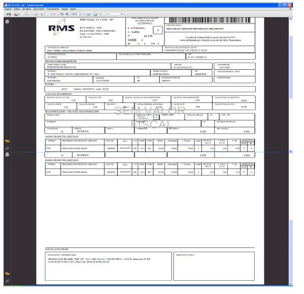 Emissão do DANFE: Os valores de ICMS e IPI foram destacados e ST informado em Dados Adicionais conforme a parametrização do VABUPAIN.