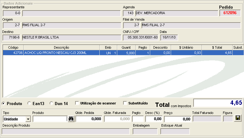 Devolução de Mercadorias para o Fornecedor Nestlé (71986) que possui regra específica no VABUPAIN para Destacar ICMS na NF e o IPI (se houver) e ICMF devem ser informados em Dados Adicionais.