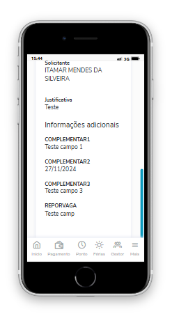 Observação: Para a linha RM será possível incluir campos complementares a partir da versão 12.1.2410.161, basta cadastrá-los no ERP. Assim que escolher o funcionário no campo "Colaborador" da requisição de desligamento, a lógica criada retonará o campo complementar ativo na coligada do colaborador escolhido.