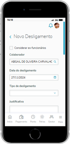 Colaborador | Funcionário que vai ser solicitado o seu desligamento |