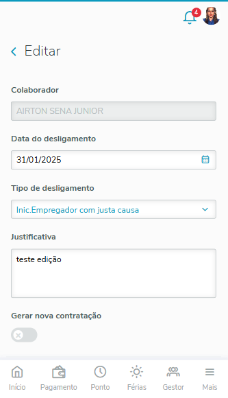 Nessa tela, a partir da versão 12.1.2410.161, será possível escolher a opção de edição da requisição de desligamento.