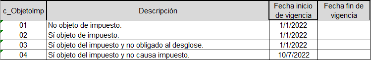 | MEX031 | 1 | 01 | RE | Objeto Impuesto | F3I |