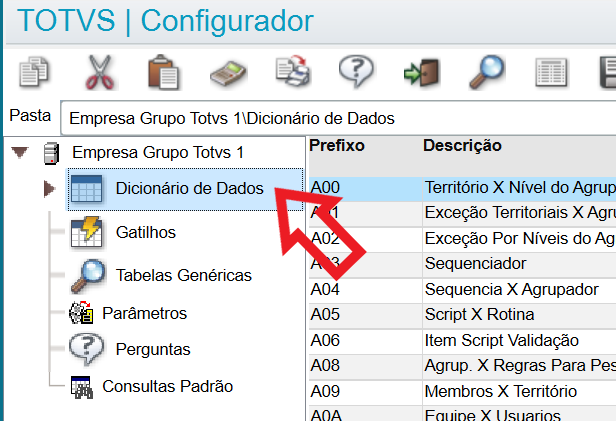 3. Selecione o Dicionário de Dados.