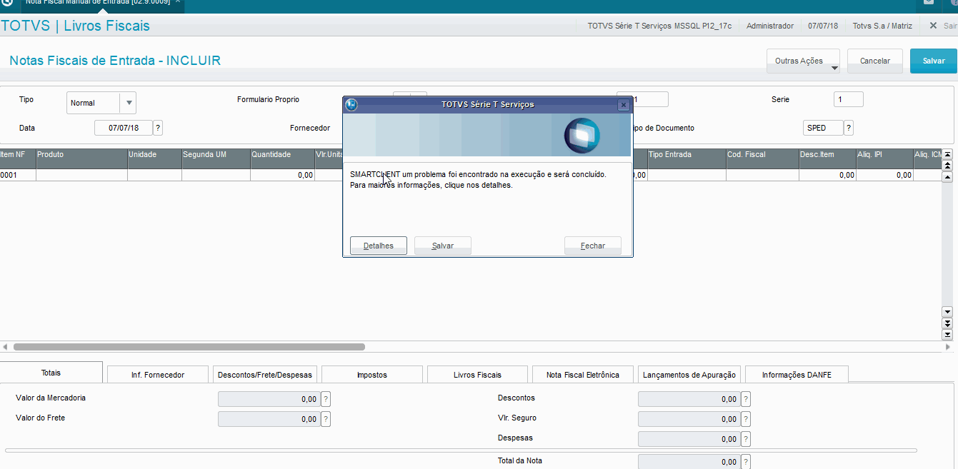 • Clique em "detalhes", depois clique com o botão direito do mouse sobre a mensagem de erro. Selecione a opção "Select All" (ou aperte "CTRL+A"), copie a mensagem de erro e salve em um arquivo do bloco de notas.