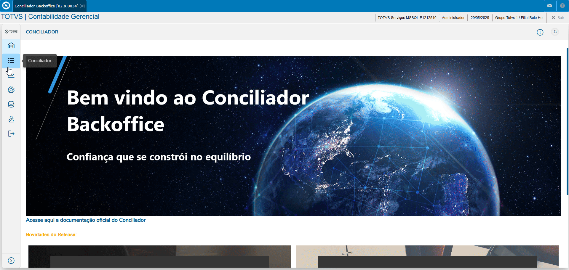 Esta documentação servirá como guia para a utilização do Gerenciar no Conciliador. O Gerenciador permite a visualização, conferência e exclusão das conciliações realizadas.