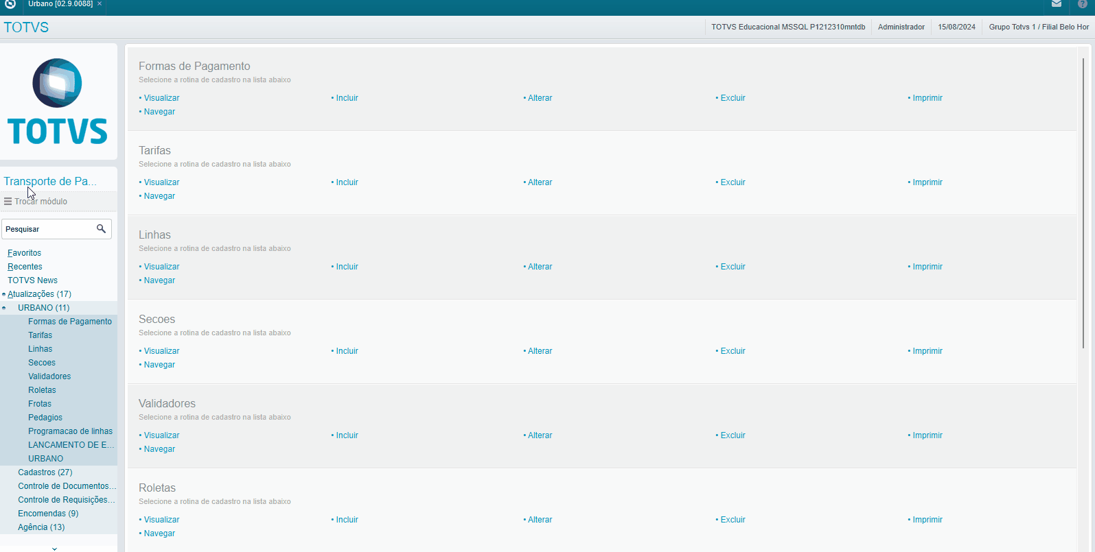 | Produto: | TOTVS Prestadores de Serviços Transporte de Passageiros |
