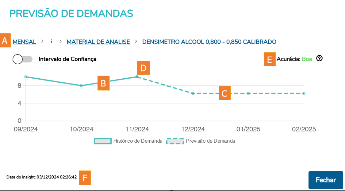 Data de Geração do Insight de Previsão de Demanda : Esta é a data em que a previsão de demanda foi gerada. Isso ajuda a entender a atualidade e relevância das informações apresentadas no gráfico.