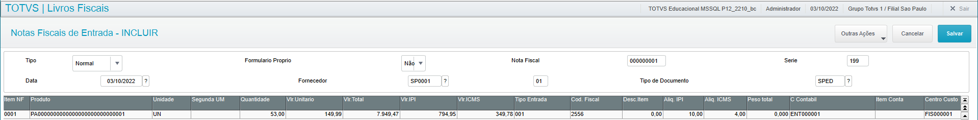 Essa rotina permite o registro de qualquer movimento de entrada de mercadorias na empresa. A entrada das mercadorias pela rotina MATA910 do módulo Livros Fiscais inicia um processo de atualização online dos impostos fiscais, não tendo integração nem atualizando com os dados dos módulos do contabilidade, financeiro ou estoques/custos.