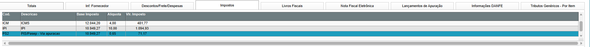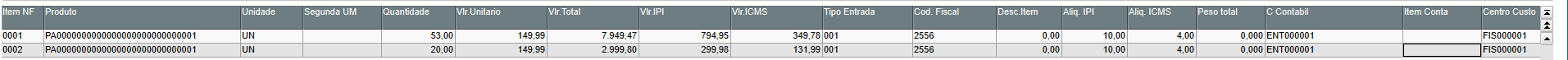 2- Preencher os Dados de grid de itens NF;