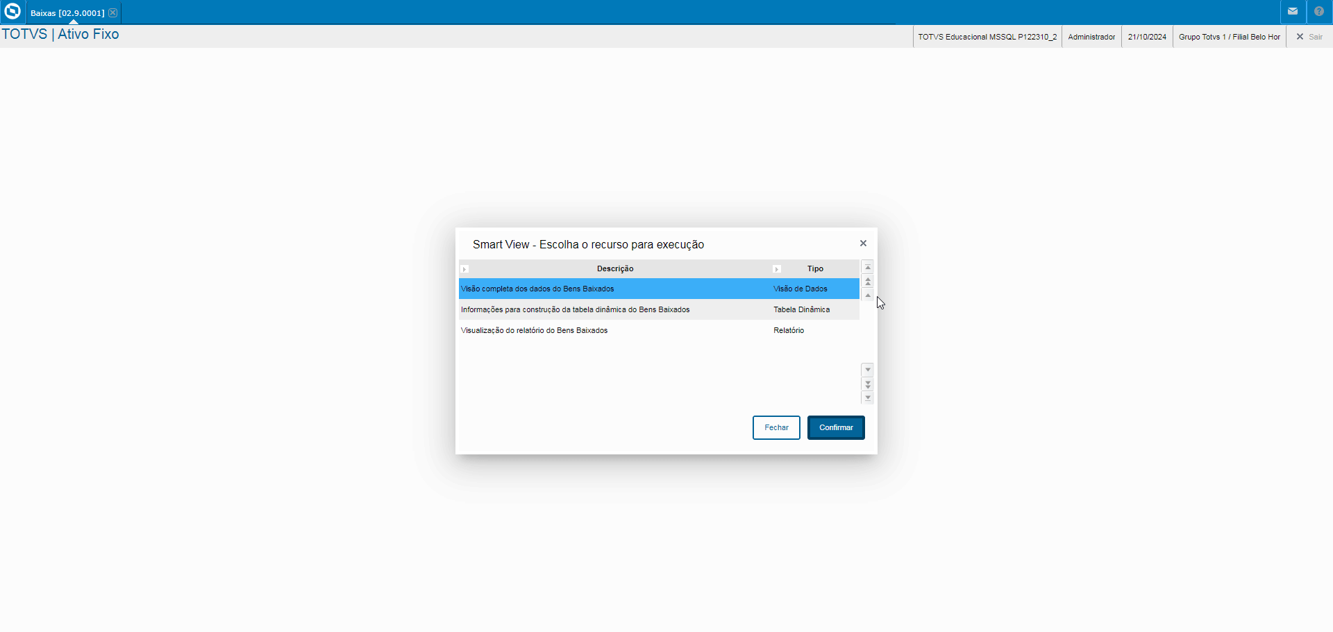 Esse relatório tem como objetivo exibir a Listagem da Visão Gerencial Bens Baixados.