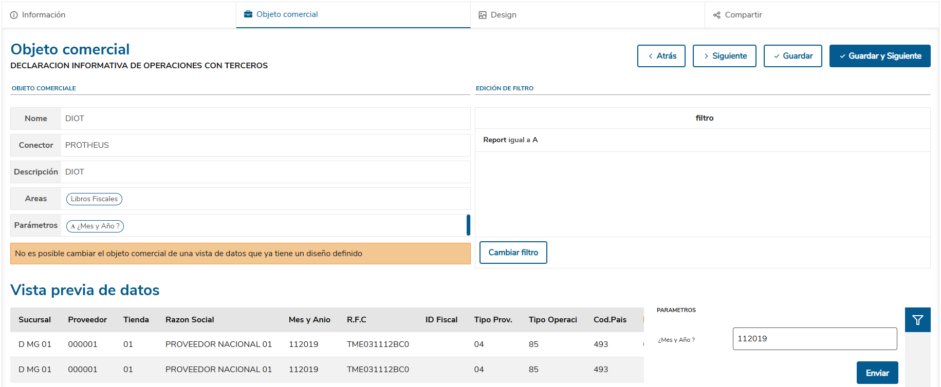 Al ejecutar el objeto backoffice.sv.fis.diot.tlpp, mostrará la información de la siguiente manera: