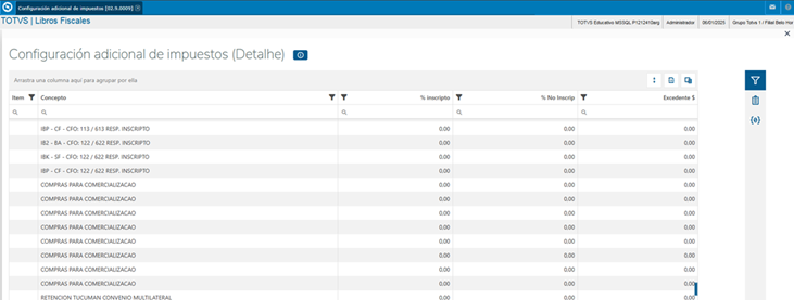 Visão de Dados: RESUMO Configuração adicional de impostos
