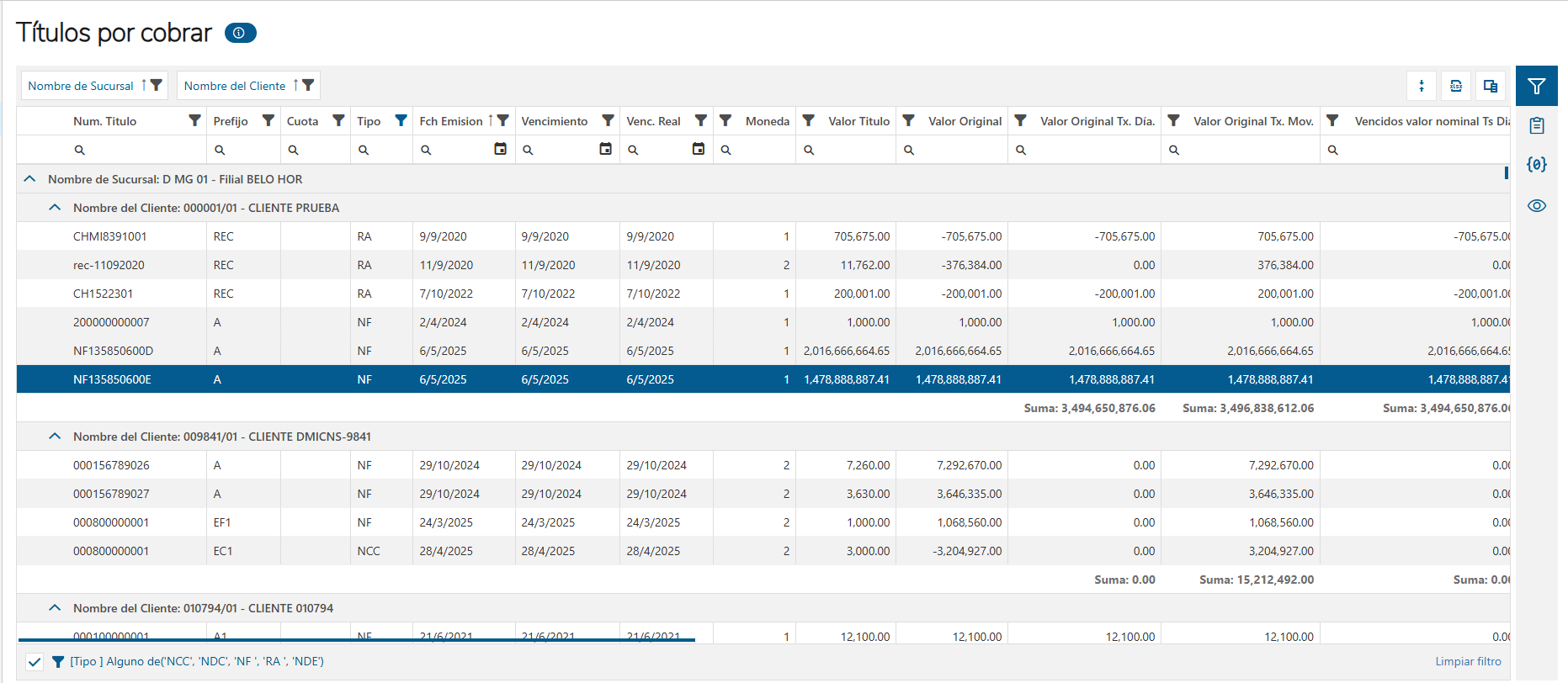 backoffice.sv.fin.AccountsReceivable.PendingBills.dg.trpVisão de dados: Titulos a receber 15/04/2024FINR13A