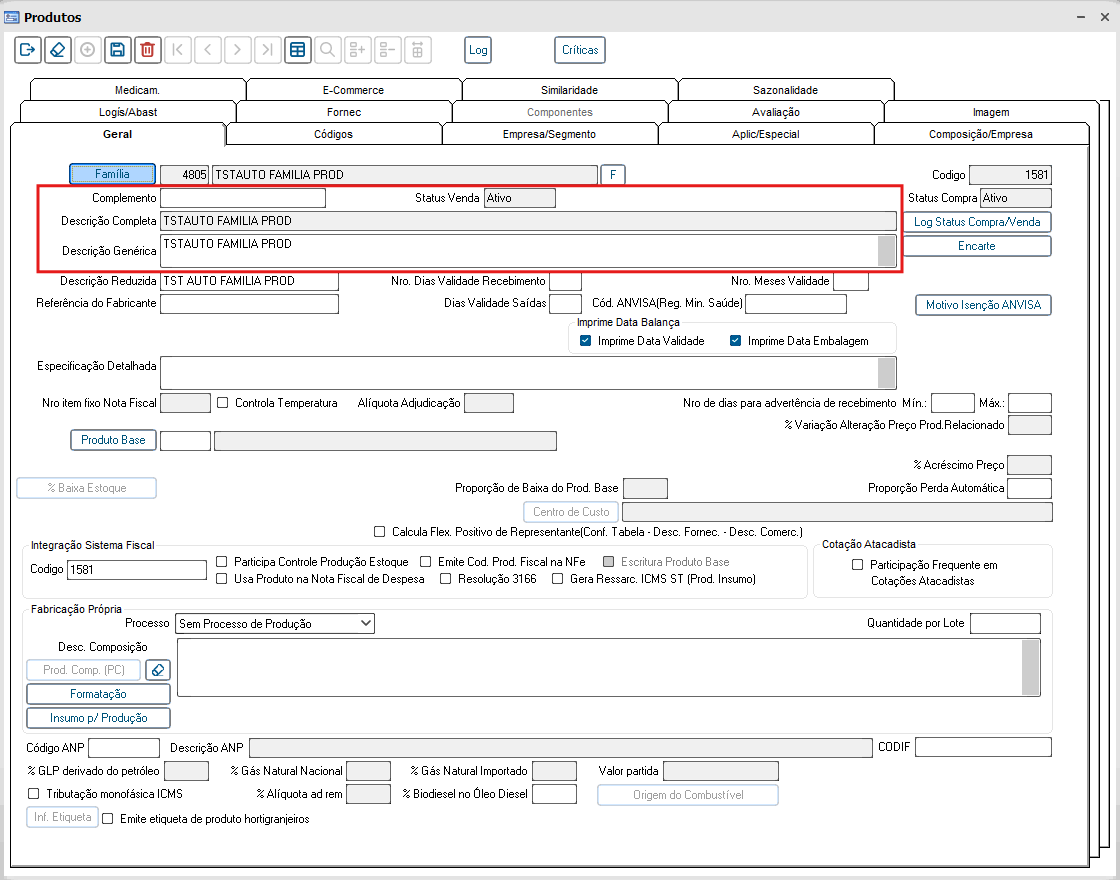 Vinculado à família, são inseridos os aspectos individuais de cada produto através do cadastro de produto; Nesse cadastro são definidos quais produtos compõem uma determinada família.