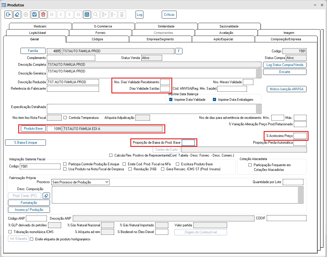 Informe no campo Número Dias Validade o número de dias considerado para validade do produto. Essa informação será utilizada para a etiqueta de balança.
