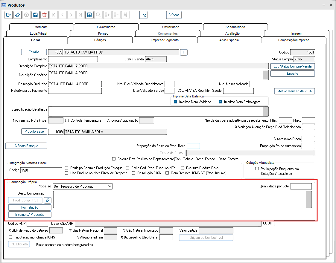 Quando o produto faz parte de fabricação própria recomenda-se informar no campo Processo a opção Insumo para Produção.