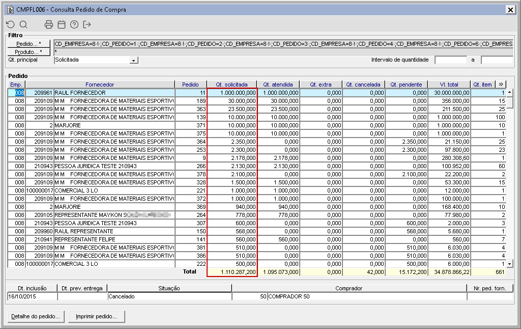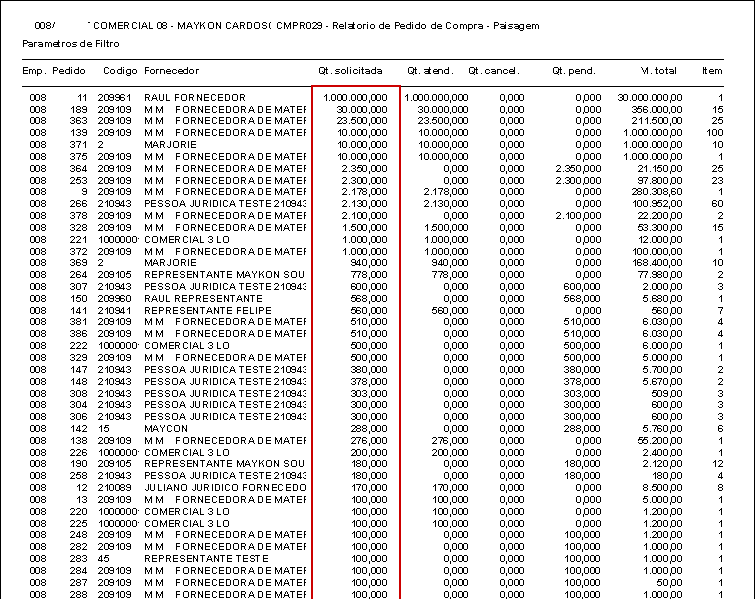 Foi identificado que os campos "Qt. solicitada" do CMPFL006 e "Qt. solicitada" do relatório CMPR029 não estavam apresentando todo o conteúdo em tela.