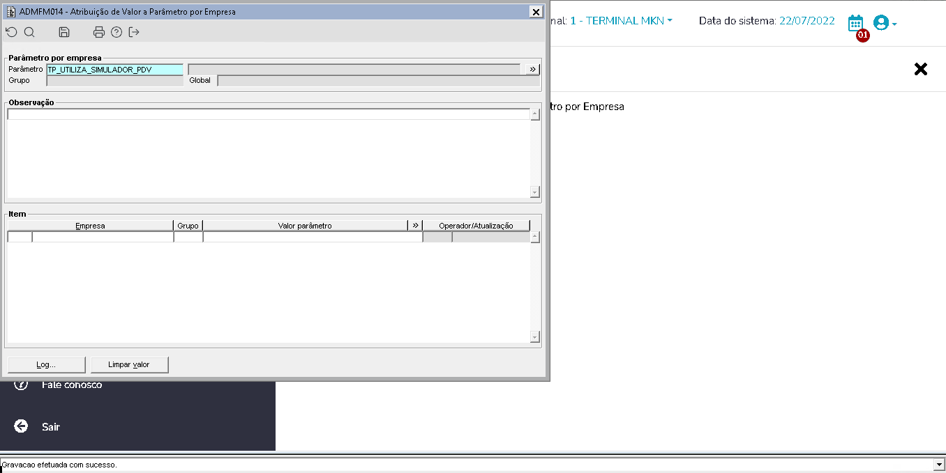 Ao configurar o parâmetro TP_UTILIZA_SIMULADOR_PDV com um valor diferente de 0 e realizar uma venda ou pré-venda utilizando um plano de pagamento no simulador a opção de pagamento de adiantamento vai estar disponível.