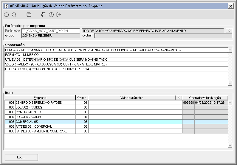 Imagem 6 - A respeito da movimentação do conta corrente, foi criado o parâmetro TP_CAIXA_MOV_CART_DIGITAL que indica se movimentará no conta corrente a conta de caixa usuário ou a conta de caixa filial/matriz. Sendo que o padrão caso não estiver setado o parâmetro, será movimentar a conta do caixa filial/matriz.