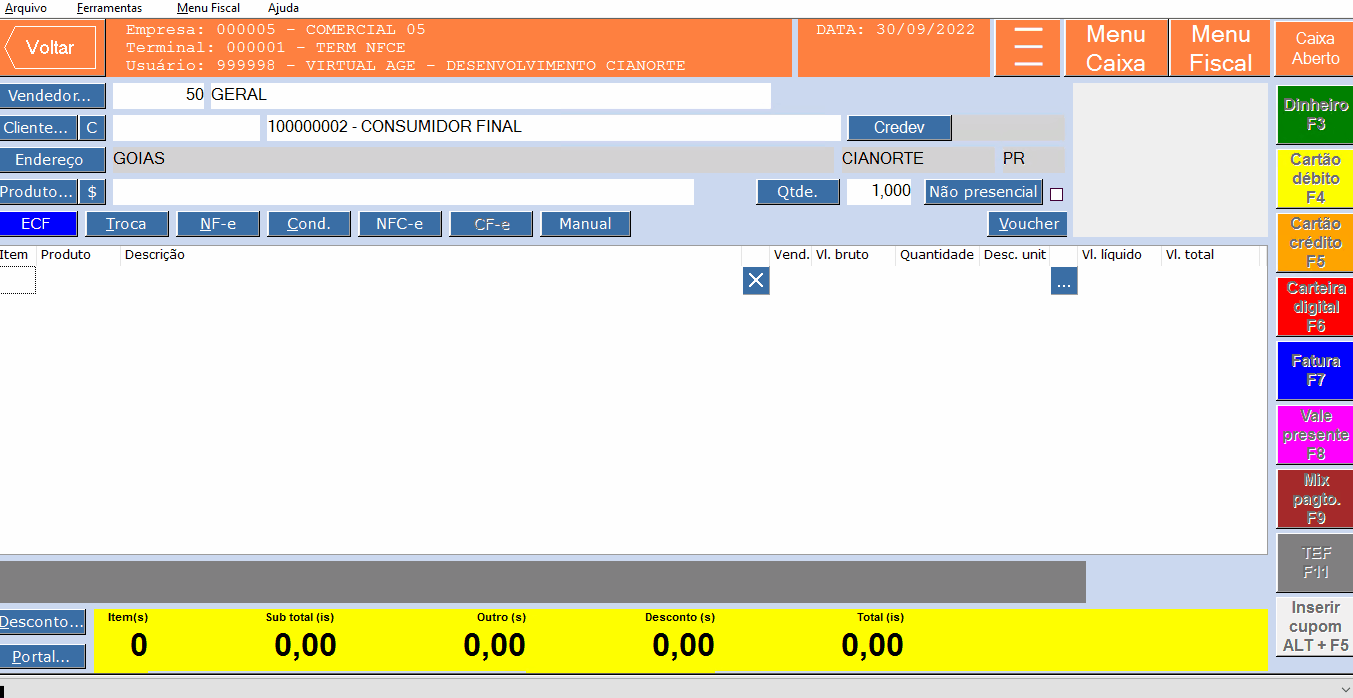 | Função: | Identificar cliente Consumidor Final que vá fazer pagamento em Carteira Digital |
