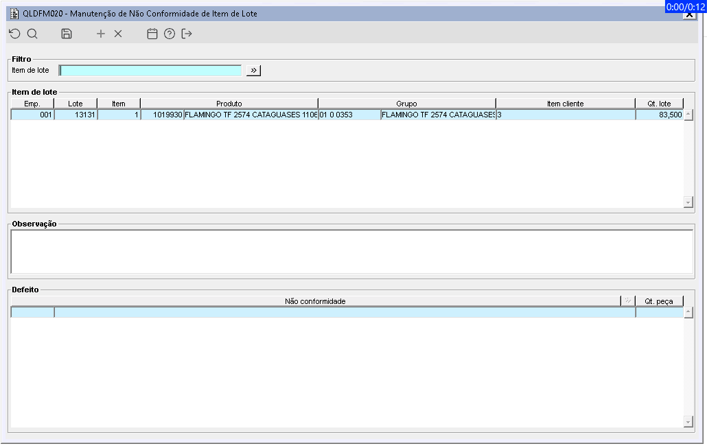 | Função: | Informar apenas um defeito por item no QLDFM020 |