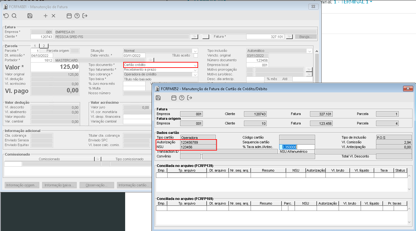 Imagem 5 - Demonstração da fatura em aberto para a operadora de crédito, sendo a segunda parcela do Cartão de crédito contendo os dados de autorização e NSU.
