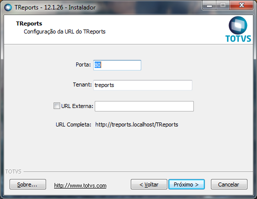 1. Com a opção de URL Externa marcada, deve ser utilizado o DNS ou Hostname do servidor. O acesso à aplicação não deve ser realizado utilizando endereço IP.