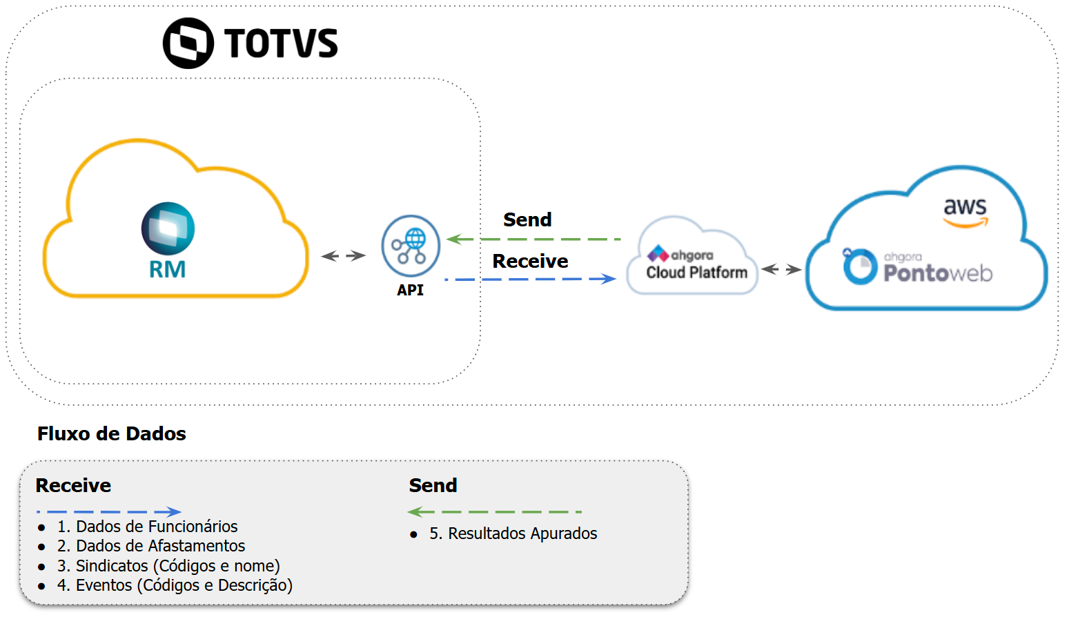 Os dados como cadastro de funcionários, afastamentos, códigos contábeis e sindicatos são enviados ao PontoWeb, para que não seja necessário realizar o cadastro novamente. Já os Resultados Apurados no período de apuração, são integrados/lançados diretamente na Folha de Pagamento.