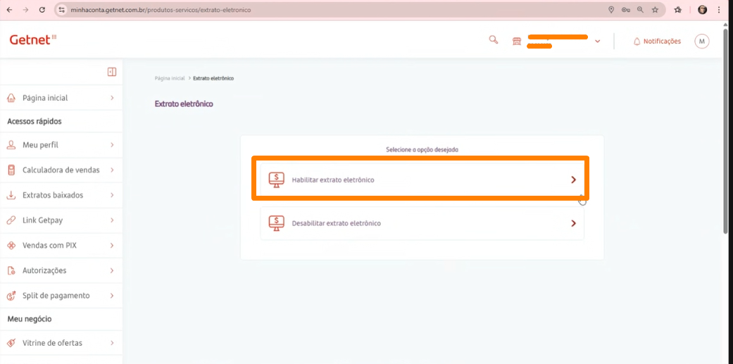 Passo 03.- Selecionar a opção Habilitar extrato eletrônico;