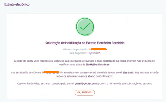 O retorno da Getnet é por e-mail, e o mesmo deve ser enviado ao responsável pela implantação da Totvs, para a sequencia da implantação.